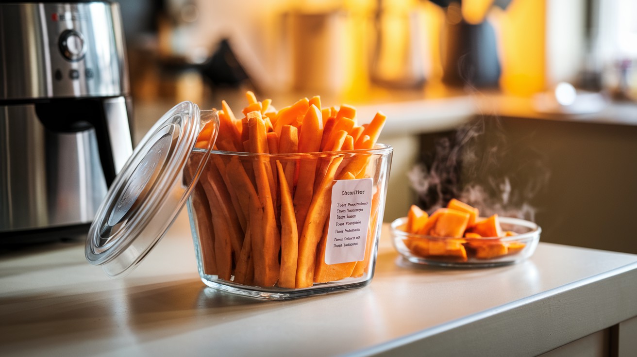 Suas batatas doces da airfryer podem durar até 4 dias na geladeira quando guardadas corretamente. Use potes herméticos para mantê-las frescas, mas lembre-se: cada dia na geladeira diminui um pouco da textura original.